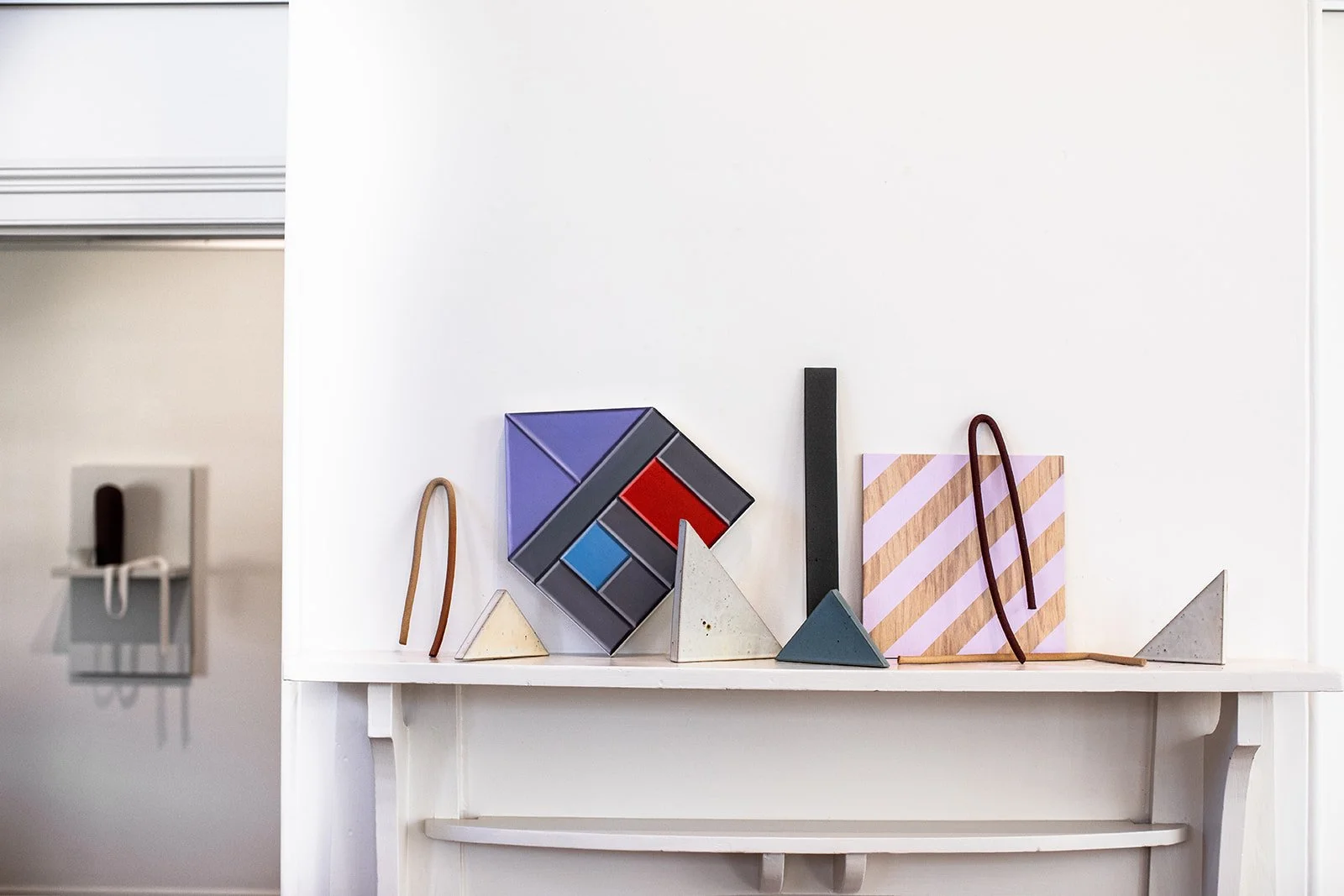 Gathering an extensive inventory of images, shapes, forms, raw, earthen, and manufactured materials, the works in this exhibition seek ways to visualise and understand unknowable futures. Investigating the works by Kelly Austin and Amber Koroluk-Stephenson in Settings for Uncertainty we find their highly personalised, staged responses as ripostes to forces of instability. Though distinct in their respective creative practices, Austin’s and Koroluk-Stephenson’s works combined in the space of the Schoolhouse Gallery, are highly staged explorations of structure, composition, and illusion. The artists seek to create a hopeful and affirming visual poetry through their works, and craft a series of illusions through the works they present. Hidden behind pastel facades, orderly arrangements, and enmeshed in the generative process of making, there is a calm optimism that balances the darkness the works both reflect but resist.